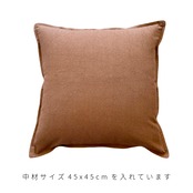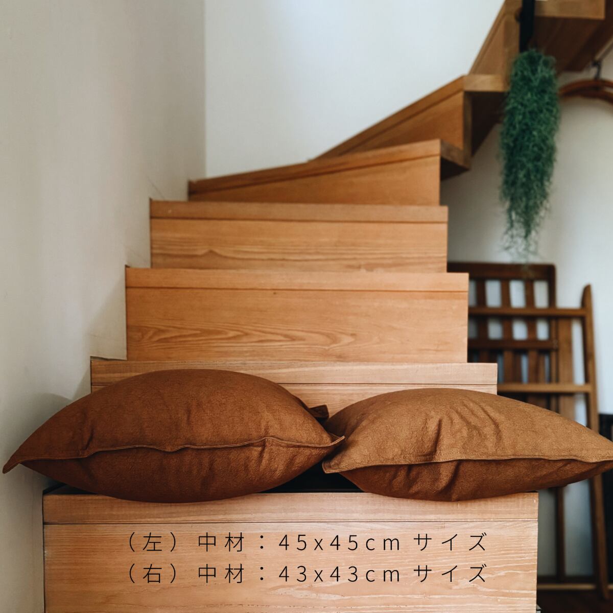 中材を入れる部分を43cm x 43cmにしているため、45cm x 45cmの中材を入れると絶妙にふっくらとした理想的なクッションの膨らみが実現します◎