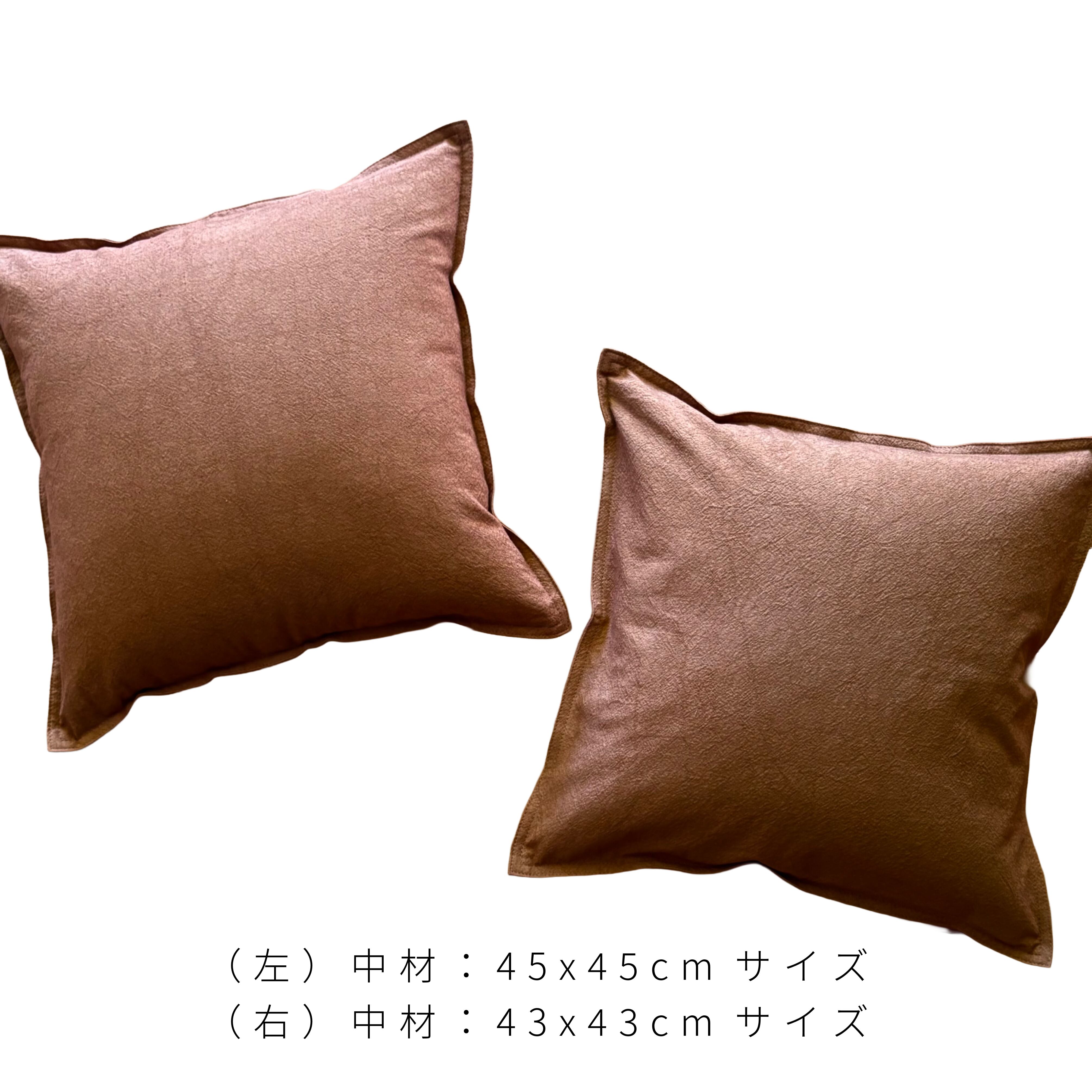 中材を入れる部分を43cm x 43cmにしているため、45cm x 45cmの中材を入れると絶妙にふっくらとした理想的なクッションの膨らみが実現します◎